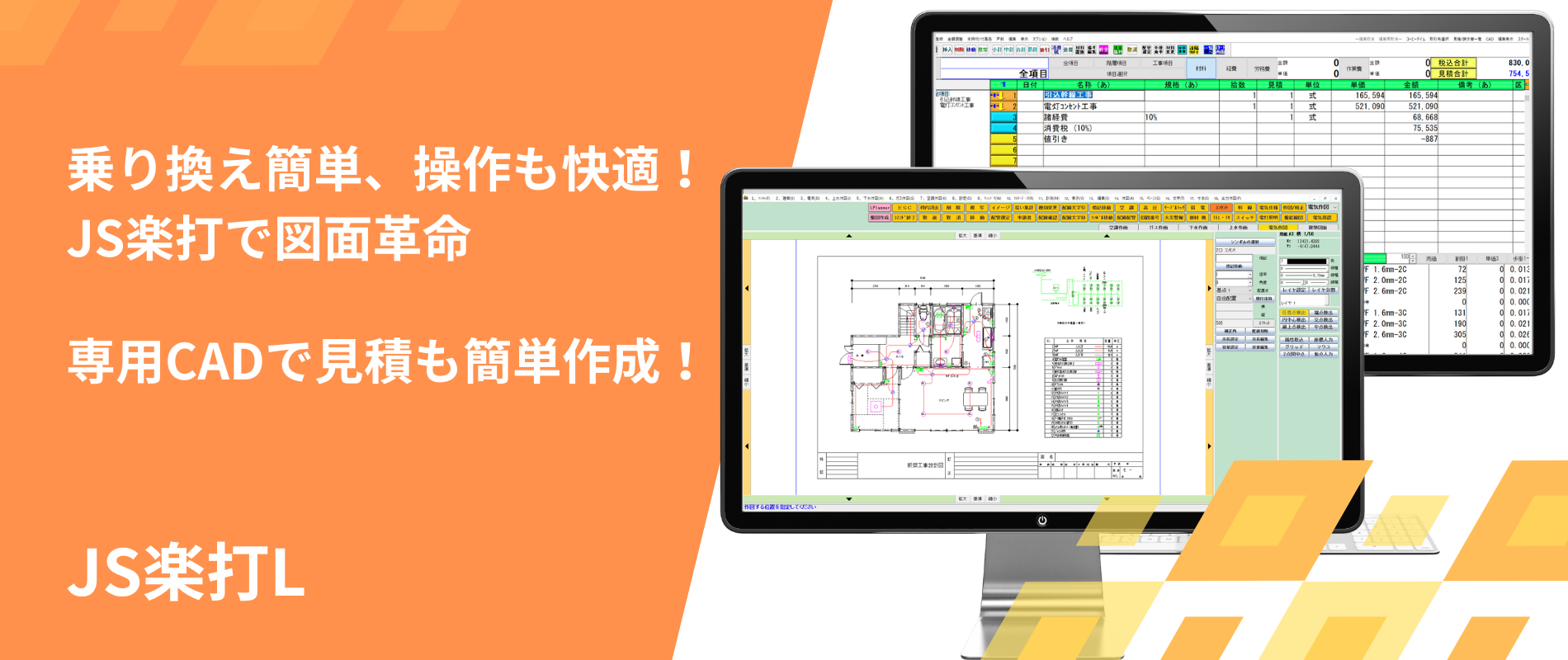 JWCADも試しましたが難しく、扱いやすいCADを探していた時に電材屋さんの展示会で楽打を知りました。