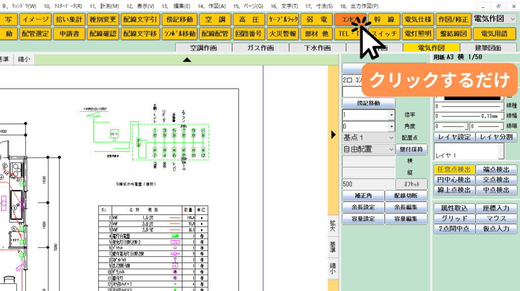 ご安心ください。「JS楽打L」は《マウスの左クリックだけで簡単に電気工事図面が書ける》をベースに開発されたソフトになります。