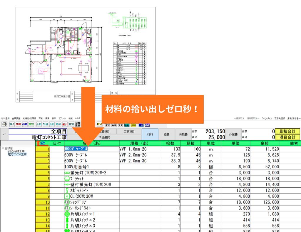 図面と連動して拾い出しゼロ秒!